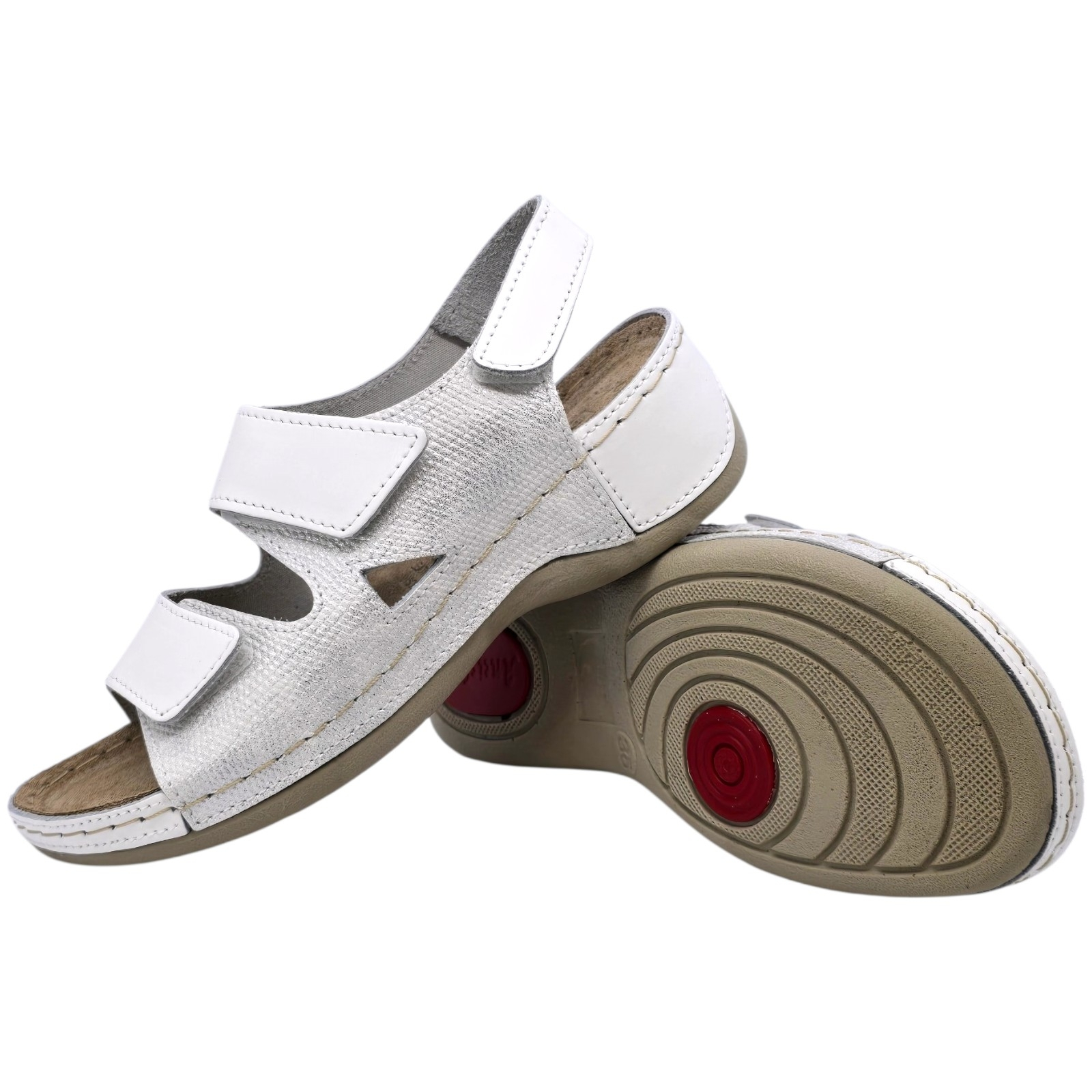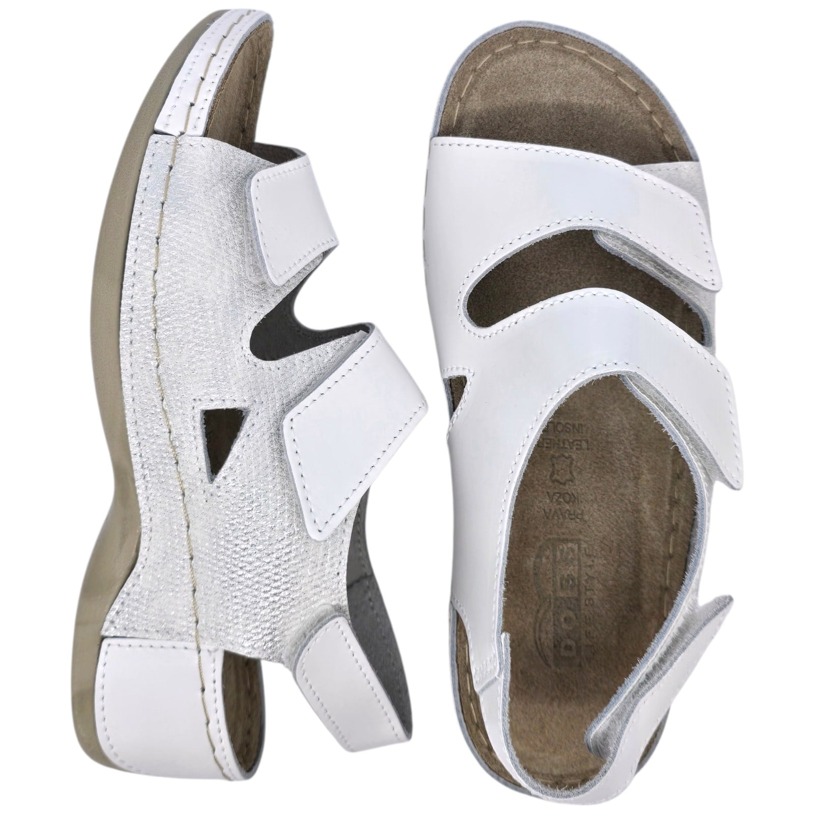 A Doss márkájú, 338-as modellű, fehér színű ortopéd talpú szandál azok számára készült, akik tökéletes egyensúlyt keresnek a kényelem és a minőség között. A láb anatómiai formájához igazodva készült papucsok optimális támaszt nyújtanak a fáradt és igénybe vett lábaknak, ideális megoldást kínálva mind a munkahelyi, mind a mindennapi tevékenységek során.