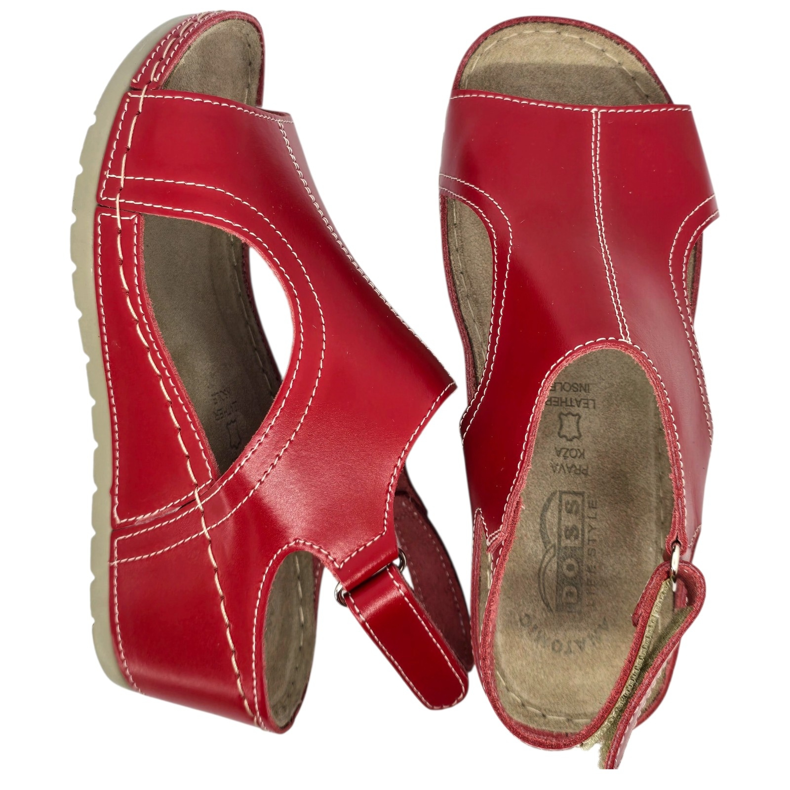 A Doss márkájú, 685-ös modellű, piros színű ortopéd talpú szandál azok számára készült, akik tökéletes egyensúlyt keresnek a kényelem és a minőség között. A láb anatómiai formájához igazodva készült papucsok optimális támaszt nyújtanak a fáradt és igénybe vett lábaknak, ideális megoldást kínálva mind a munkahelyi, mind a mindennapi tevékenységek során.