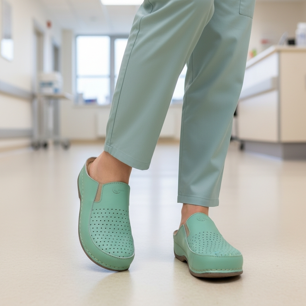 A természetes bőrrel bevont rugalmas és könnyű poliuretán talp ortopédikus kialakítású, anatómiai, antisztatikus, csúszásgátlóval ellátott, elnyeli a járás közbeni ütéseket (anti-shock), kényelmet, tartást és minőséget kínál, így ez a lábbelitípus ideális mindennapi használatra .