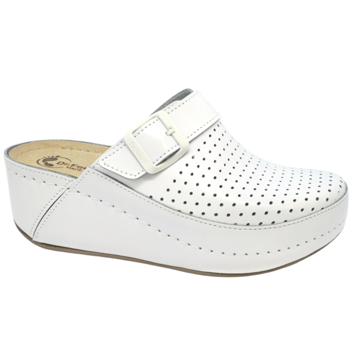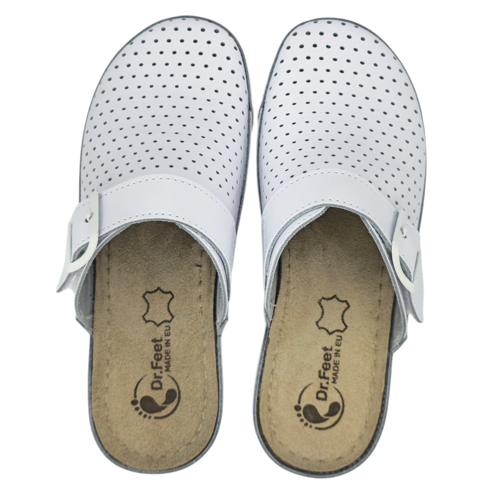 A Dr Feet 3021 -es modellű, fehér női papucs tökéletes párosítása a legújabb divatirányzat és a maximális kényelem között, amely a stílust és kényelmet ötvözi otthon, a munkahelyen, egy hosszú sétán és az élete legsűrübb napjain. Mivel a legjobb minőségű természetes olasz bőrből készültek, ötvözik a luxust, az eleganciát és az első osztályú minőséget.