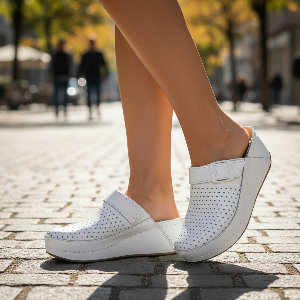 A természetes bőrrel bevont rugalmas és könnyű poliuretán talp ortopédikus kialakítású, anatómiai, antisztatikus, csúszásgátlóval ellátott, elnyeli a járás közbeni ütéseket (anti-shock), kényelmet, tartást és minőséget kínál, így ez a lábbelitípus ideális mindennapi használatra .