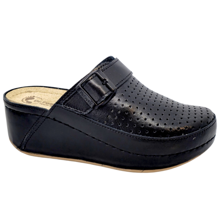 A Dr Feet 3021 -es modellű, fekete női papucs tökéletes párosítása a legújabb divatirányzat és a maximális kényelem között, amely a stílust és kényelmet ötvözi otthon, a munkahelyen, egy hosszú sétán és az élete legsűrübb napjain. Mivel a legjobb minőségű természetes olasz bőrből készültek, ötvözik a luxust, az eleganciát és az első osztályú minőséget.