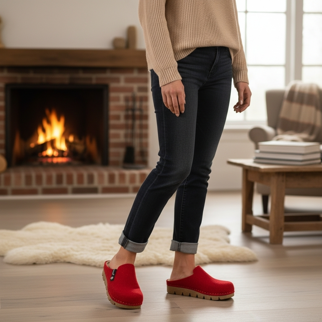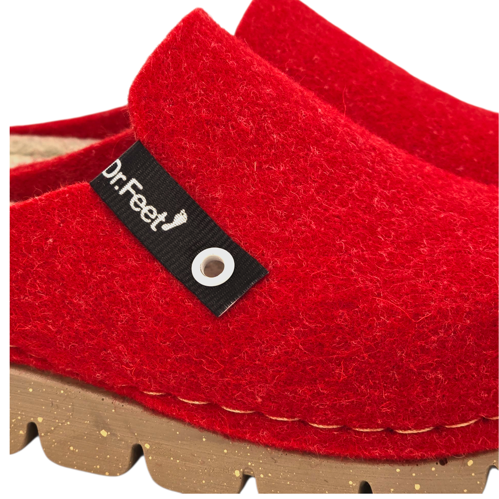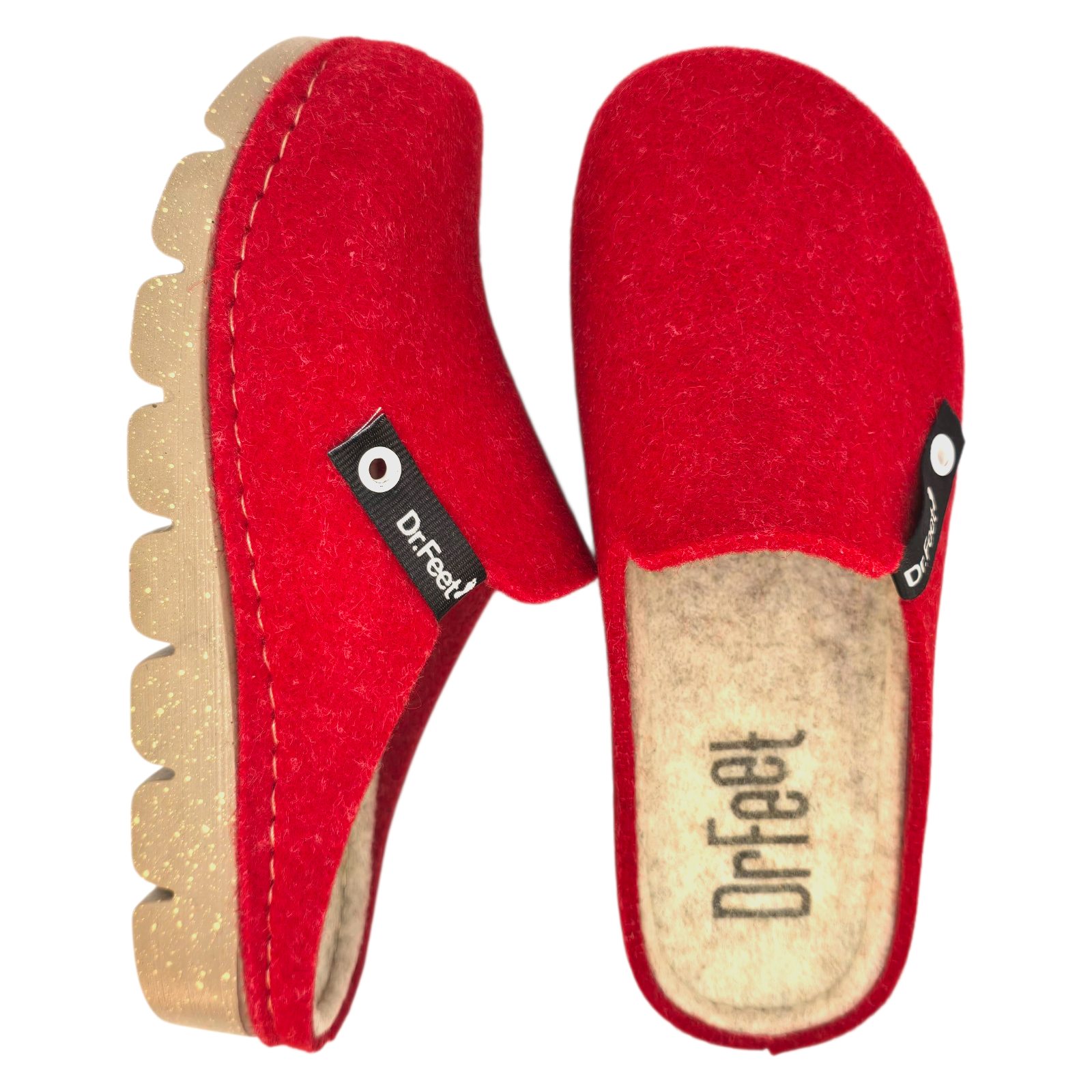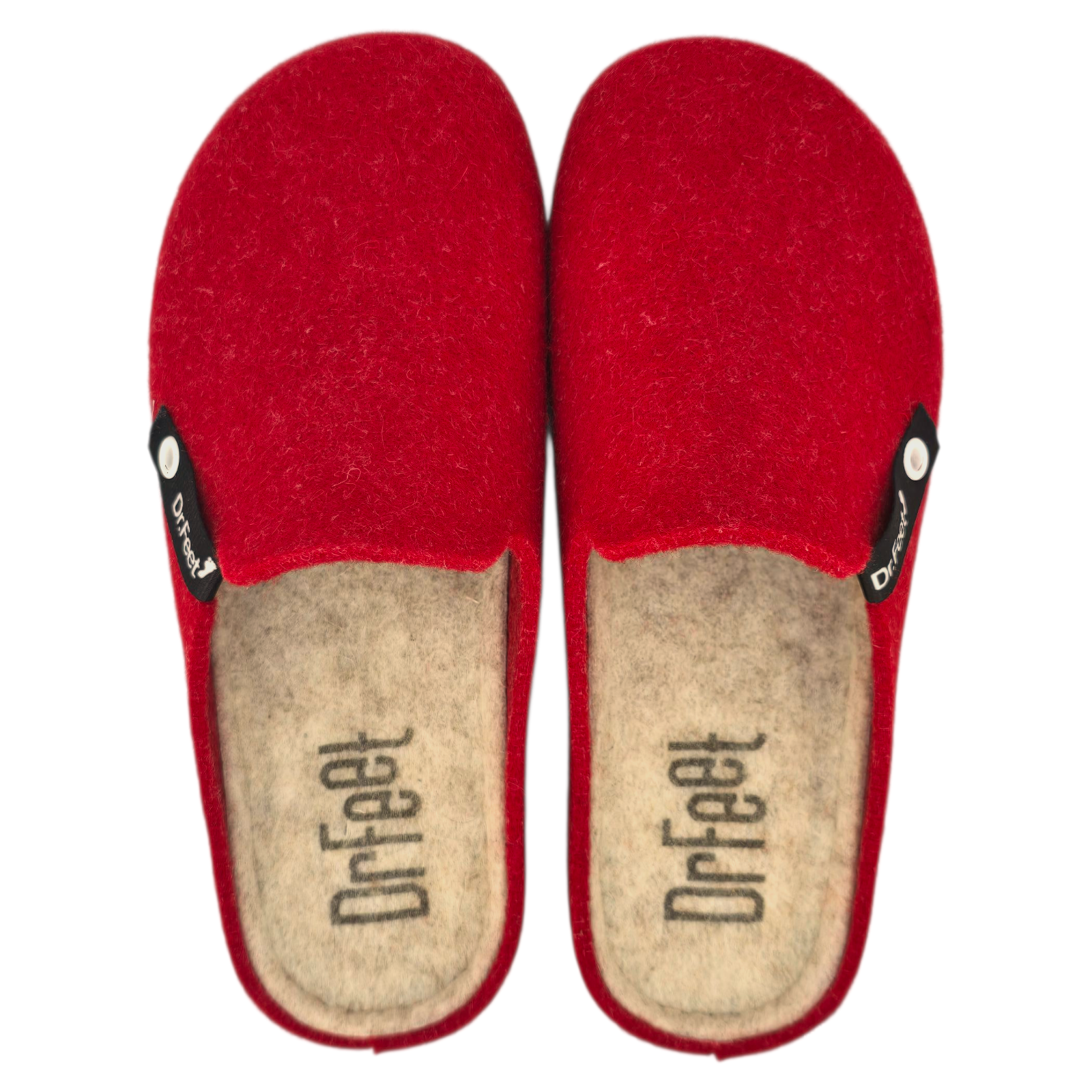 A Dr.Feet 1107-es modellű, piros színű gyapjúpapucs tökéletes párosítása a legújabb divatirányzat és a maximális kényelem között, amely a stílust és kényelmet ötvözi otthonában lábai számára.