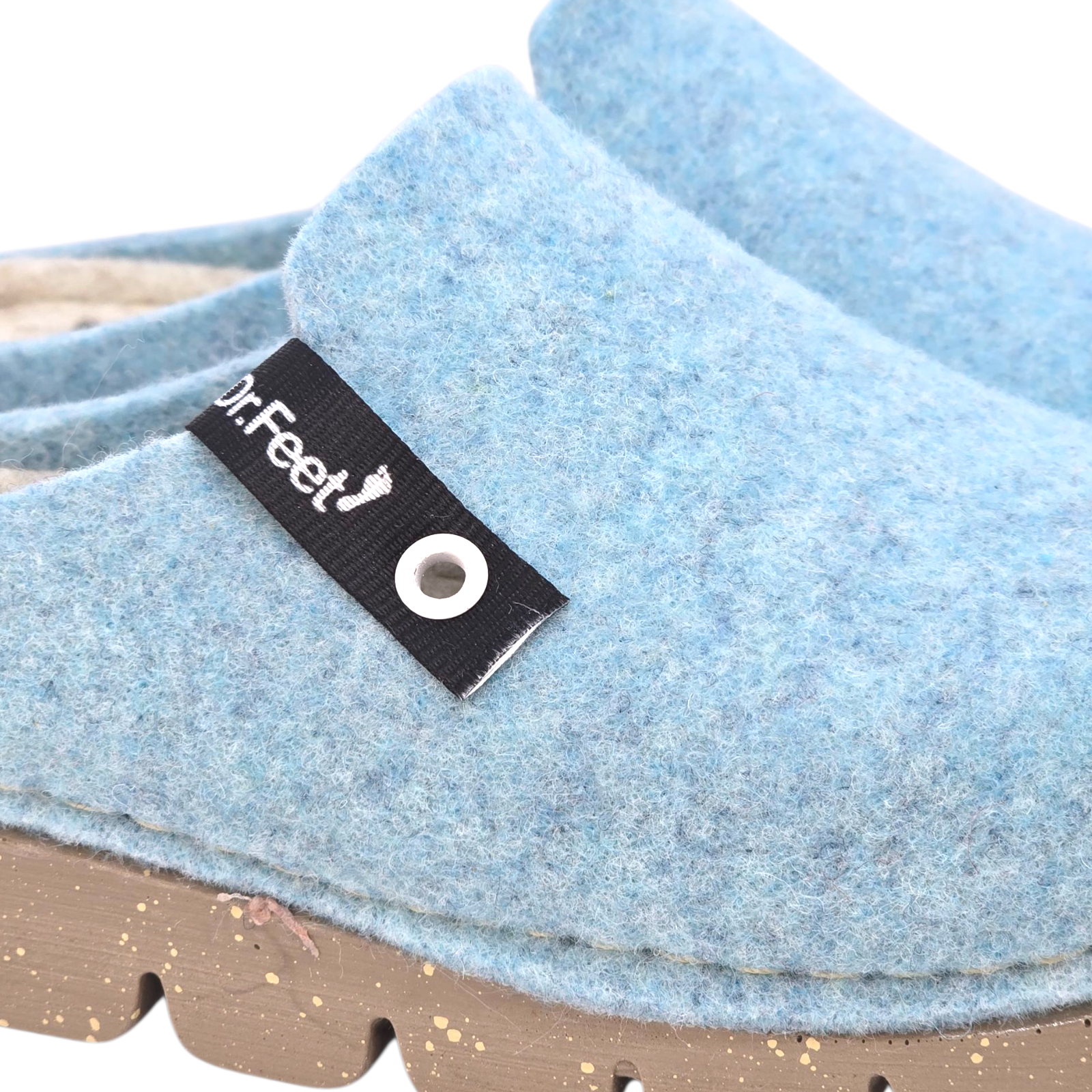 A Dr.Feet 1107-es modellű, világos kék színű gyapjúpapucs tökéletes párosítása a legújabb divatirányzat és a maximális kényelem között, amely a stílust és kényelmet ötvözi otthonában lábai számára.
