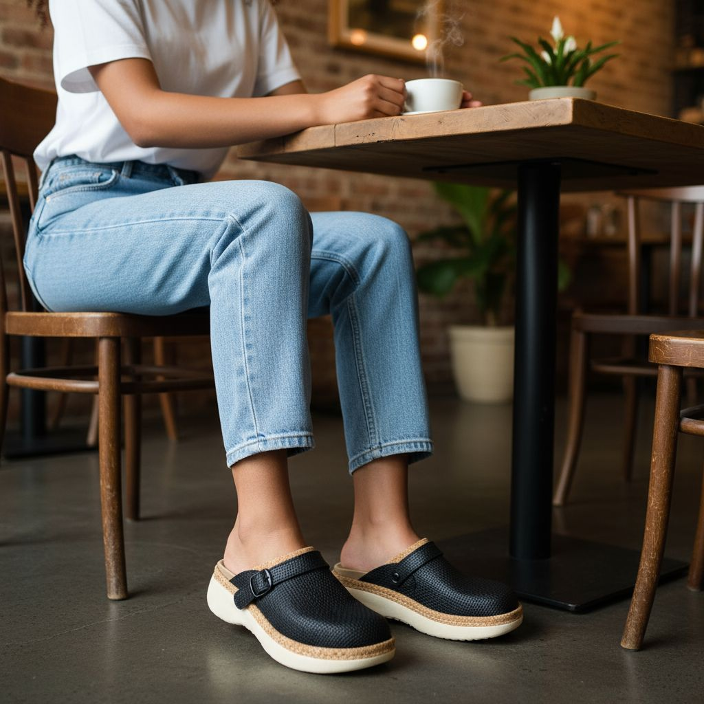 Talp szerkezete: puha kivehető szivacsos talpbetét, anatómikus kialakítású, poliurátén, csúszás mentes, parafa, rugalmas, maximalis kenyelem, könnyed, ergonómikus, anti-shock, 5,5cm sarokmagasság, puha, memória szivacsos talp