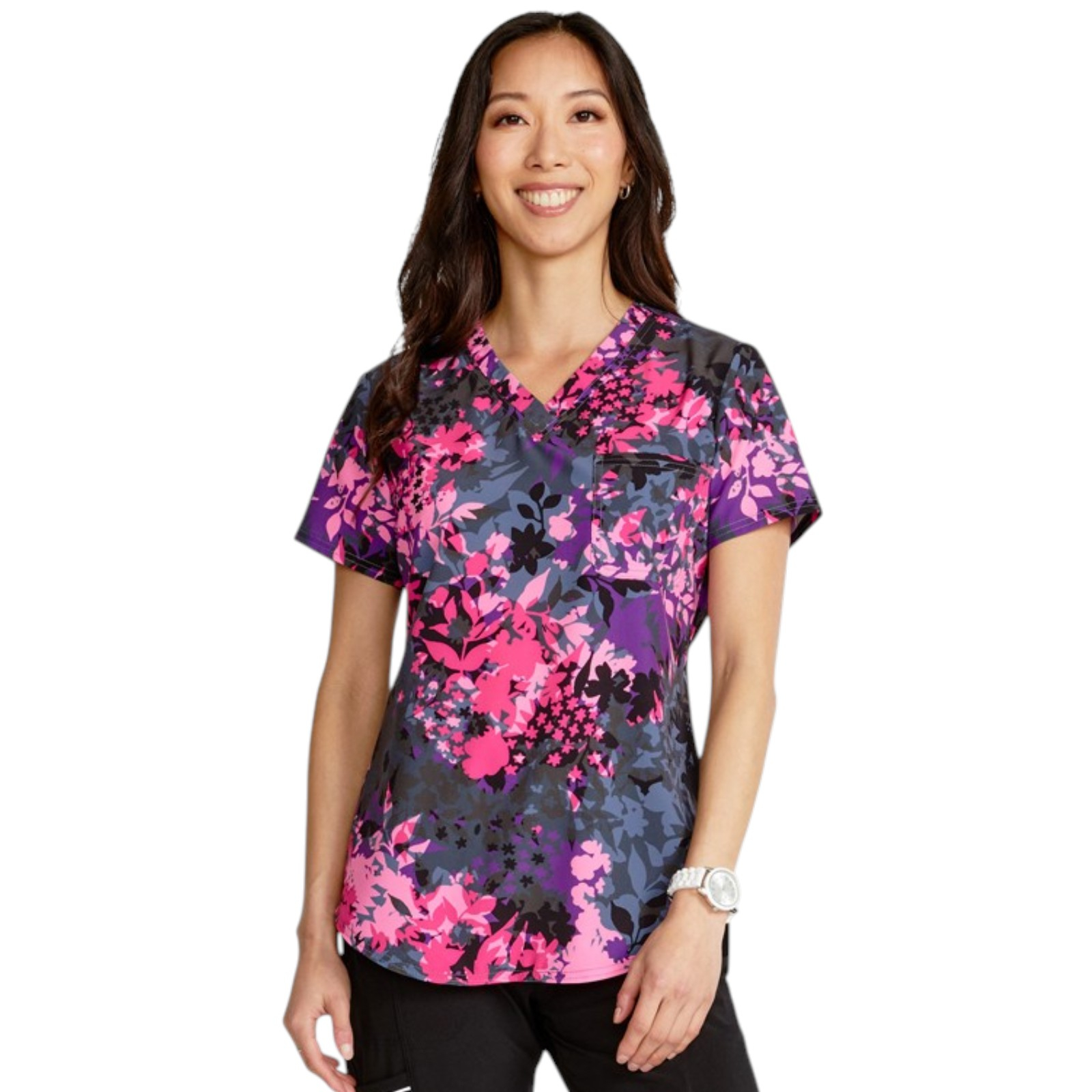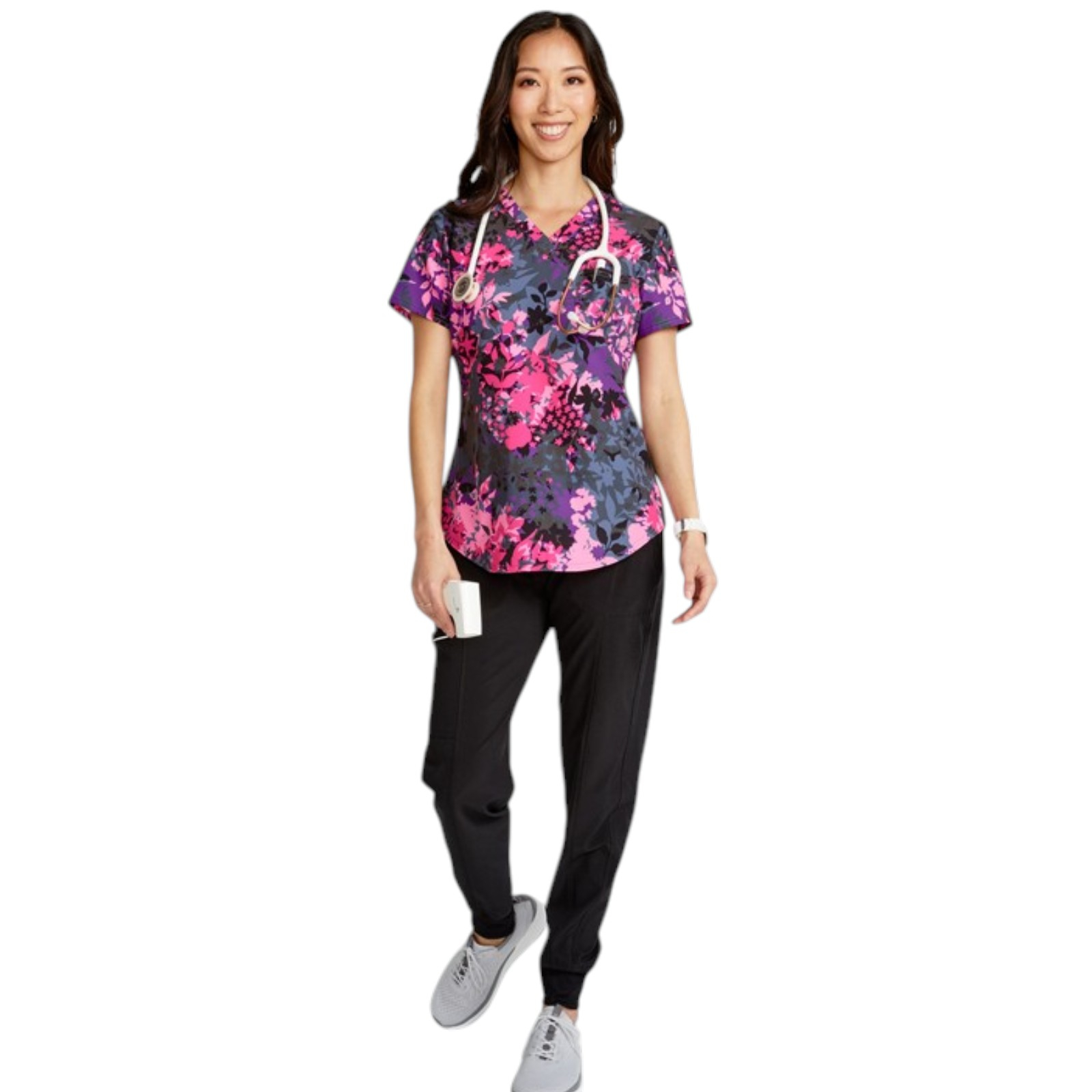 GENUINE CK664 orvosi felső egy karcsúsított (fitted) női tunika, amely ötvözi az eleganciát a funkcionalitással. A V-nyakú kialakítás és a modern mintázat ideális választássá teszi a kifogástalan munkahelyi megjelenéshez.