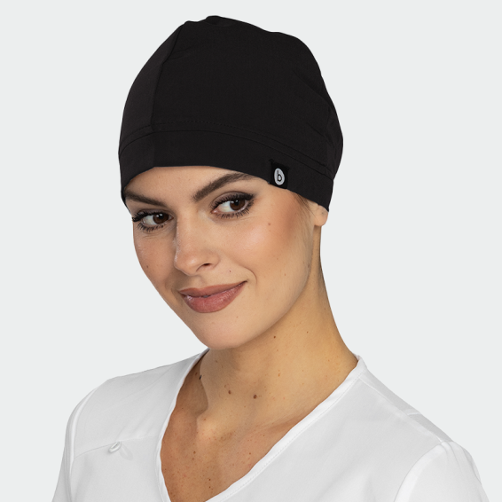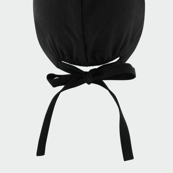 Ez egy unverzális méretű fekete színű unisex modelű műtős sapka.. Mindenki számára megfelelő, és könnyen rögzíthető a fejen a hátul található zsinorokkal.. Elől a homloki részen egy pamut betét van elhelyezve, amely felszívja az izzadságot. Anyaga 72%poliester/21%rayan/7%elastan,, tartós és kivaló minőségű anyag. Mosógépben max.40 fokon mosható.