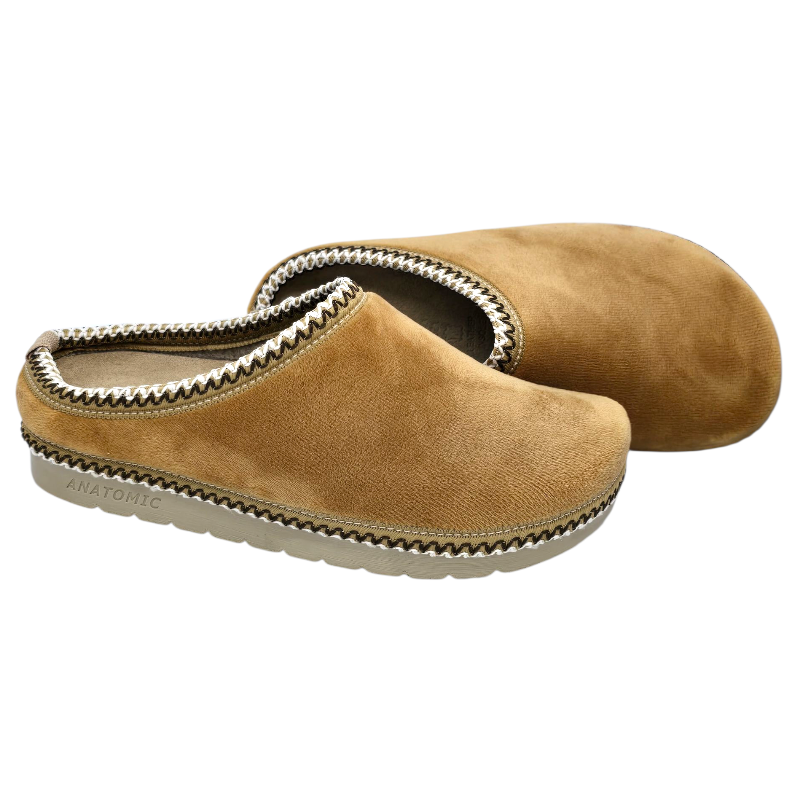 A 555-ös modell, barna  színű Doss textil utcai és házi papucs azoknak készült, akik fáradt lábaik számára tökéletes egyensúlyt keresnek a kényelem és a minőség között a hideg évszakokban is. A láb anatómiai formájára kialakított textil klumpa optimális alátámasztást biztosít a fáradt és megterhelt lábaknak, ideális megoldást jelent a mindennapi benti tevékenységekhez, nemcsak kényelmet, hanem további hideg elleni védelmet is nyújt a lábnak.