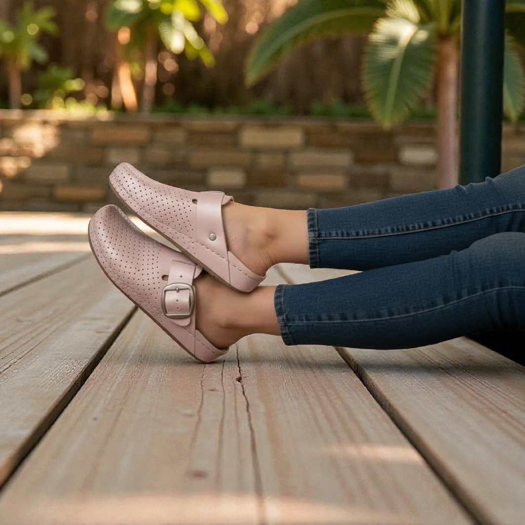 Design: lyukacsos felsőrész, fém csattal állítható pántok